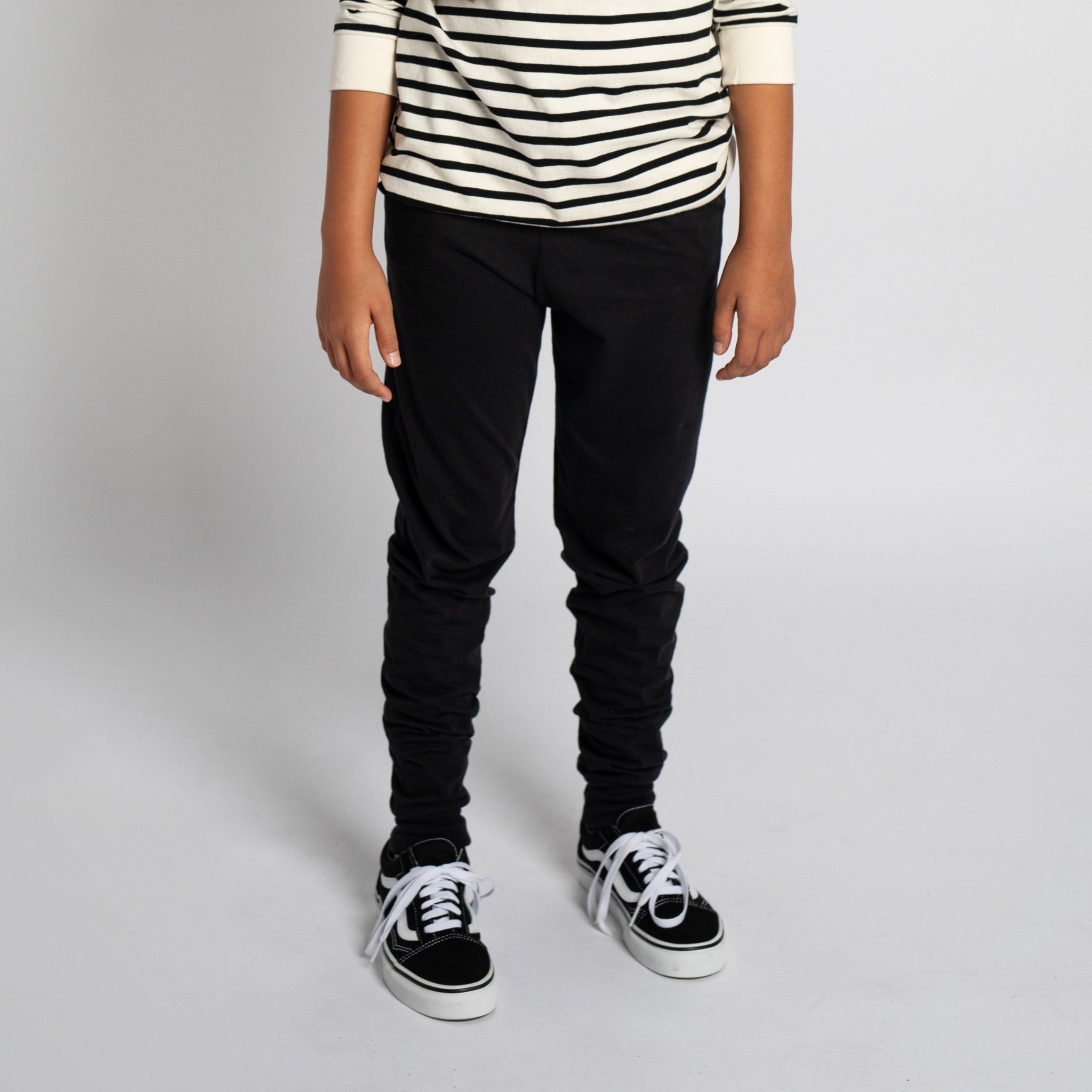 These comfy 100% GOTS certified organic cotton jersey skinny sweats are the perfect all year round pants for your little one. The legs slim from the knee down for a cool, modern silhouette (a modern spin on sweatpants).