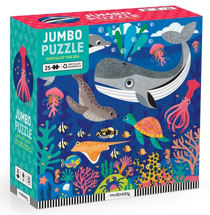 Piece together a colorful underwater scene with Mudpuppy's Depths of the Sea Jumbo Puzzle. A stingray, seahorse, and jellyfish are just a few of the delightful critters you'll find as you assemble the 25 oversized and durable puzzle pieces. Jumbo Puzzles are a fun and educational way for the youngest puzzlers to practice hand-eye coordination and problem solving.