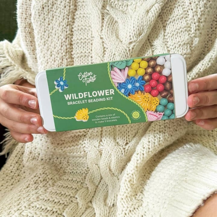 Containing enough beads to make 5 bracelets, a selection of wildflower, leaf & spherical beads await. The elastic comes with metal ends to aid the beading process for young children.