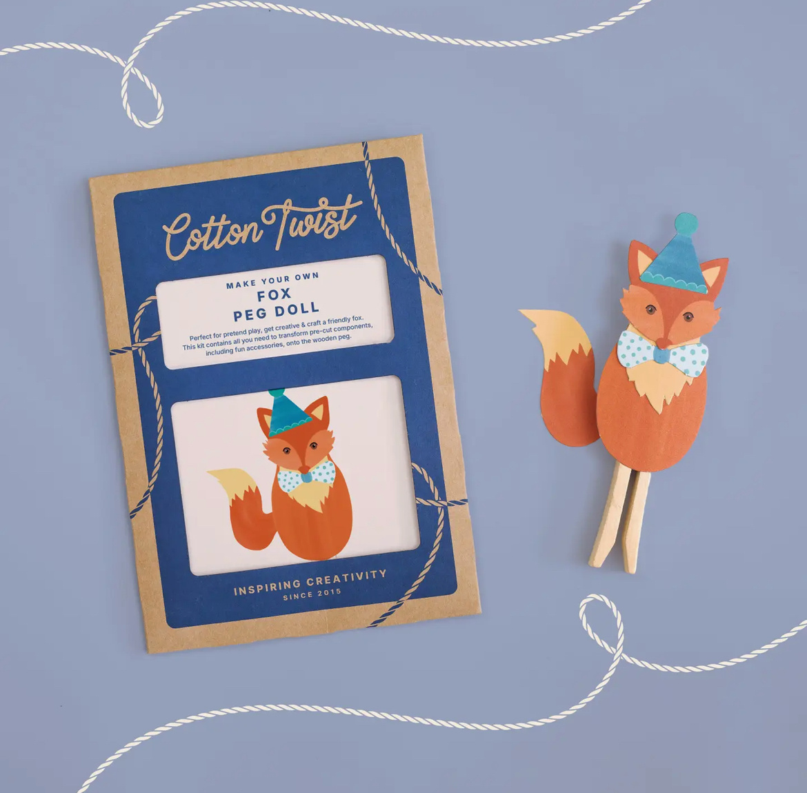 • UKCA/UKNI/CE tested & FSC certified Children love to craft & create, & this fox peg doll is no exception. Not only a fun activity, this peg doll also sparks imaginative play. The fox comes with a body, head, tail, bow tie, shorts & a party hat. Cotton Twist products are lovingly assembled by hand, & all components are as good as we can possibly make them.