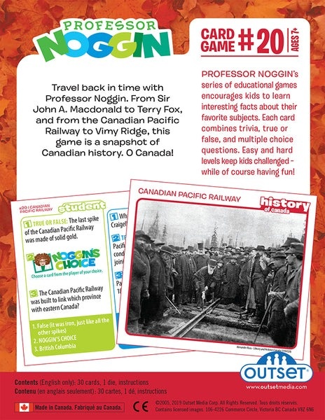 How was Canada involved in World War One, The Great Depression, or Early Settlements? Find out this and more in the History of Canada kids card game. We're sure that adults will have fun learning fun facts about Canada as well!