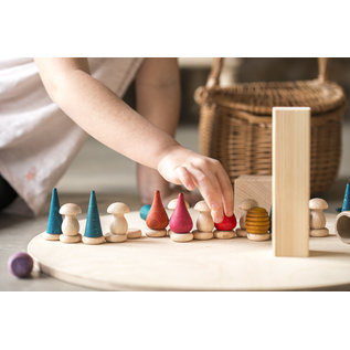 GRAPAT provides material without instructions, open-ended and autonomous play. Their only premise is to let children play, slowly, without time limits. Grapat hand crafts materials that encourage, invite and stimulate the creation of invented little worlds. Grapat is made following traditional processes, in the old way, with thick soft raw materials, natural dyes which let the wood veins be seen and vibrant coloured waxes and oils that slightly shine. The products are painted by hand, homemade, surrounded by nature and many children nearby that inspire the makers daily.