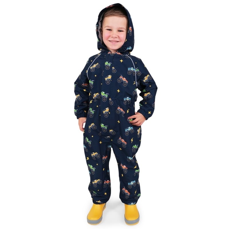 Big Trucks Cozy Dry Fleece-Lined Waterproof Play Suit by Jan & Jul
