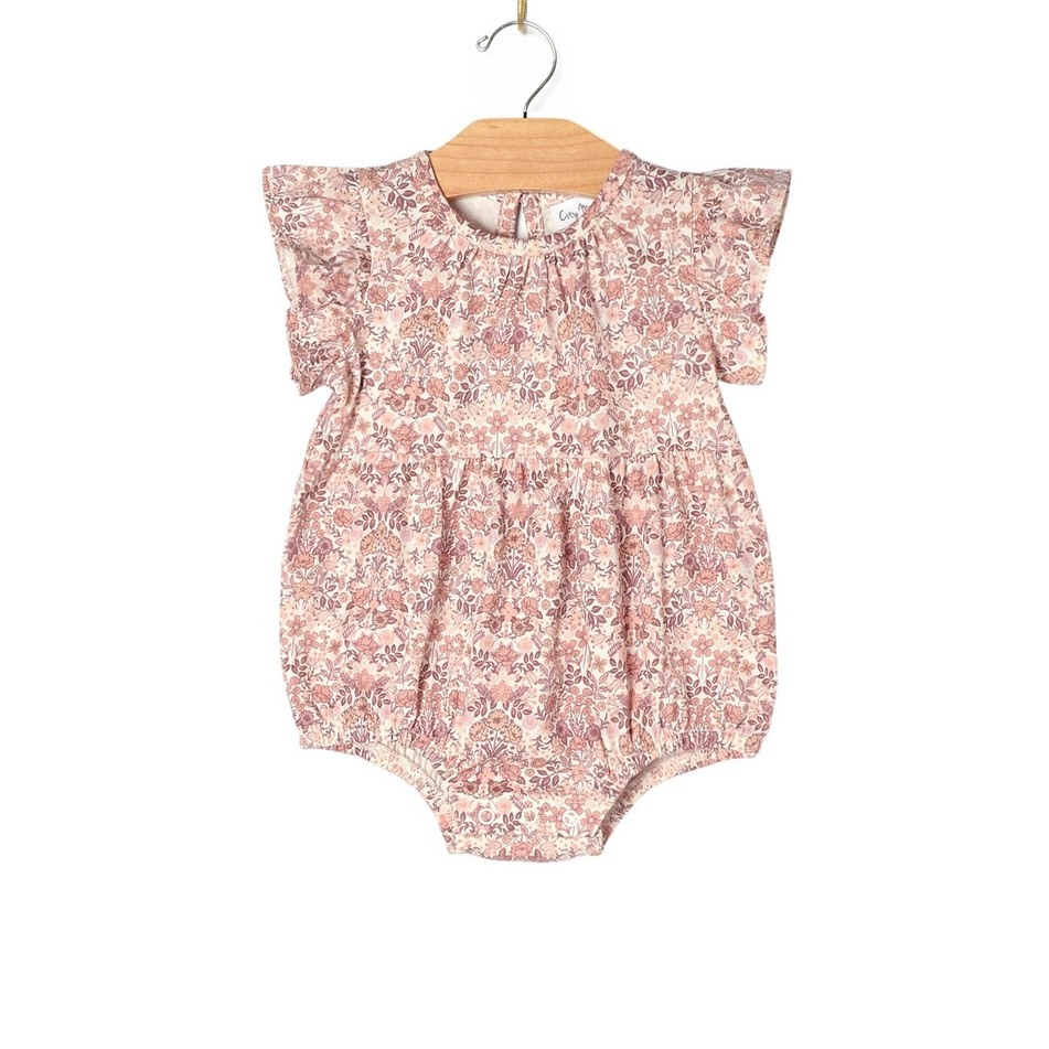 Our spring bouquet print is new in a favorite silhouette - flutter sleeves and a bubble waist make this both easy and stylish. In our 100% cotton combed jersey and with snaps at the crotch for easy changing it's perfect for spring adventures and events.