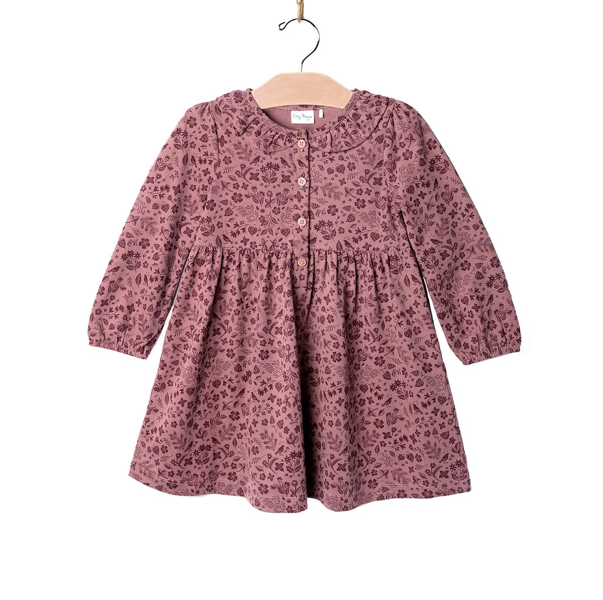 Frill Collar Dress in Plum Birds Print