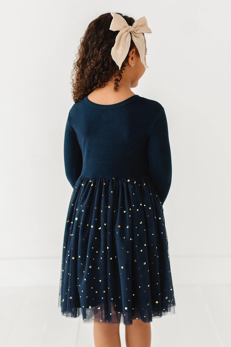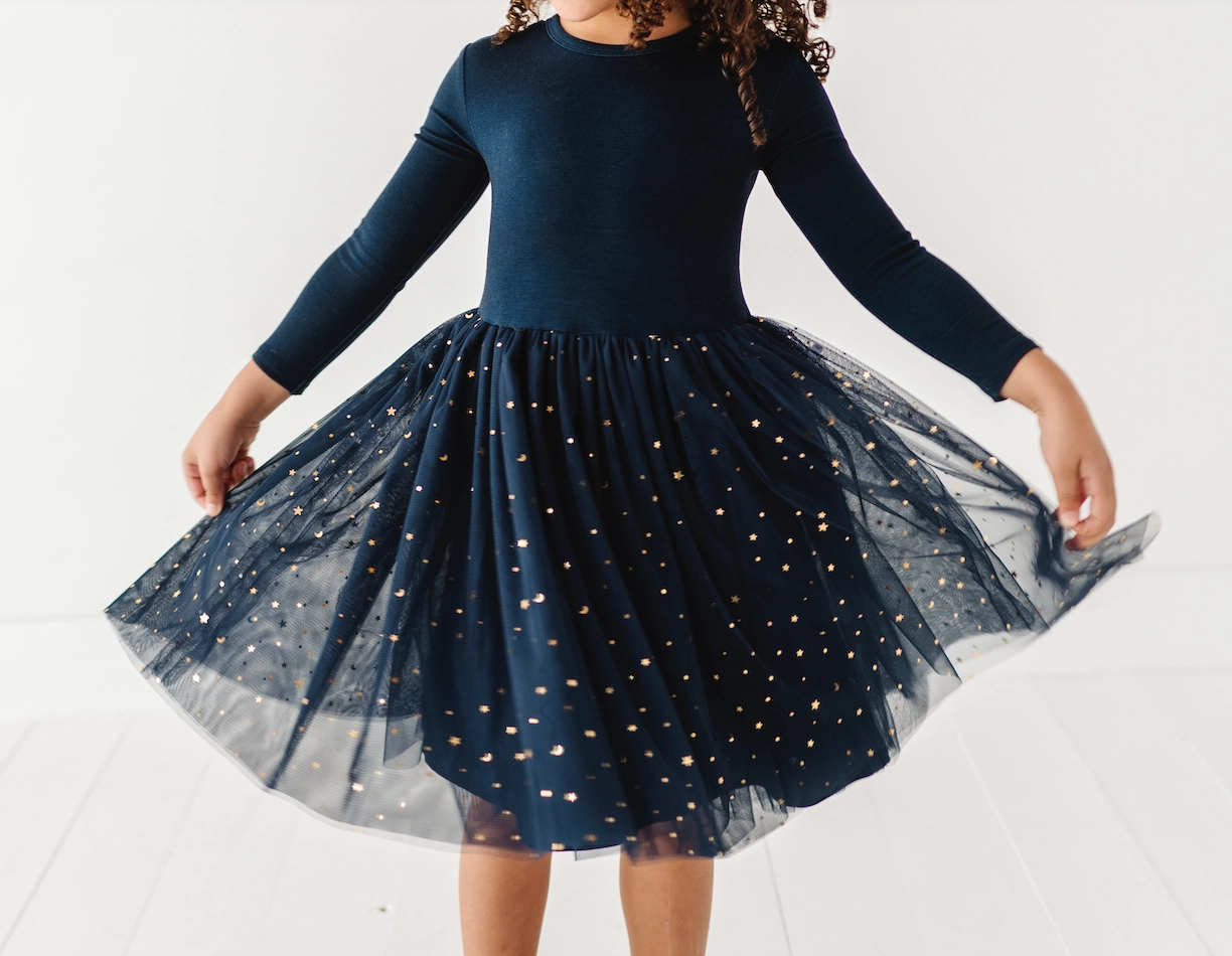 This enchanting girls' dress combines the softness of bamboo fabric with the delicate charm of tulle. Our signature Bambeanie® bamboo offers a luxurious, breathable feel, perfect for keeping little ones comfortable all day. The soft layers of tulle are perfect for your little who loves to twirl, creating a beautiful, floaty effect with every movement. Enjoy a day at a holiday ballet! Be the belle of the party! And shine bright in those holiday photos! This dress is the perfect girls Christmas and holiday dress! These are our best- selling, highest quality, and most comfortable girls dresses.