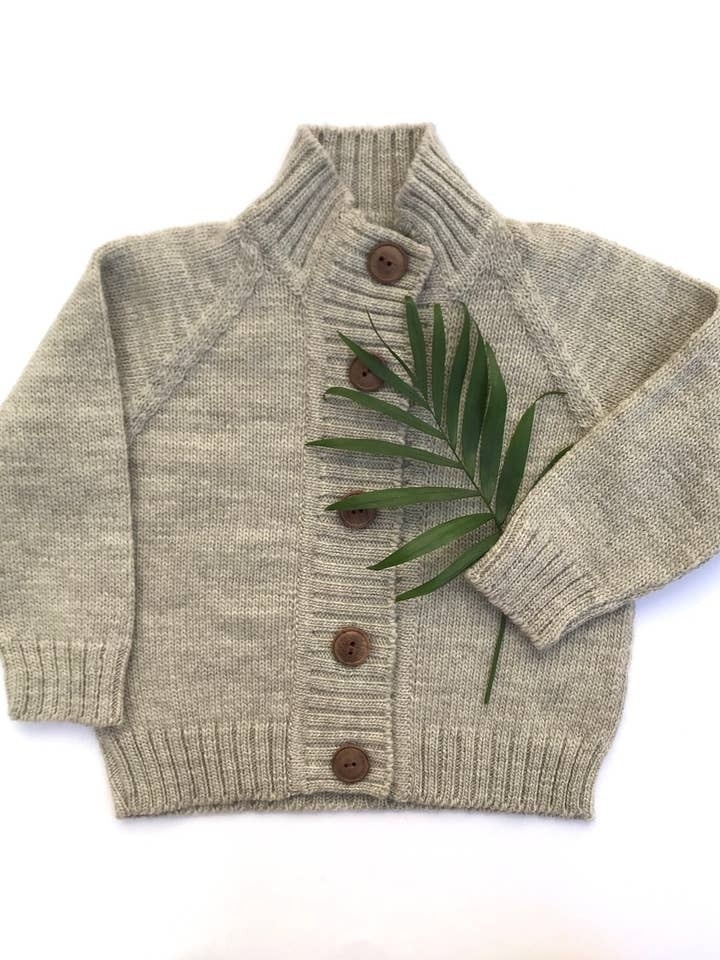 Our hand-knit cardigan is made from 100% pure New Zealand Merino wool and finished with hand-made wood buttons. Timeless style and every day comfort make this a great layering piece for your little one's wardrobe. Washing instructions: Hand wash with lukewarm water and mild detergent. Lay flat to dry.