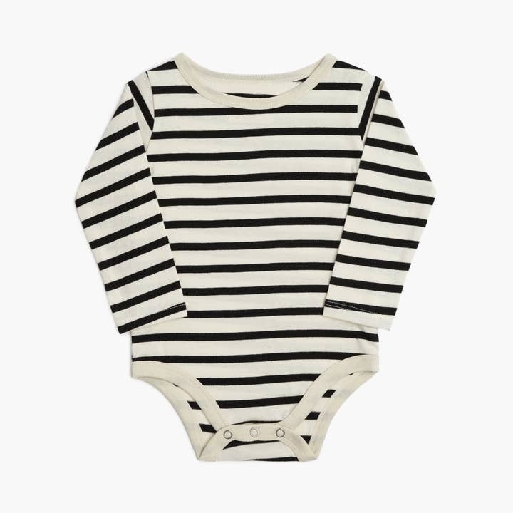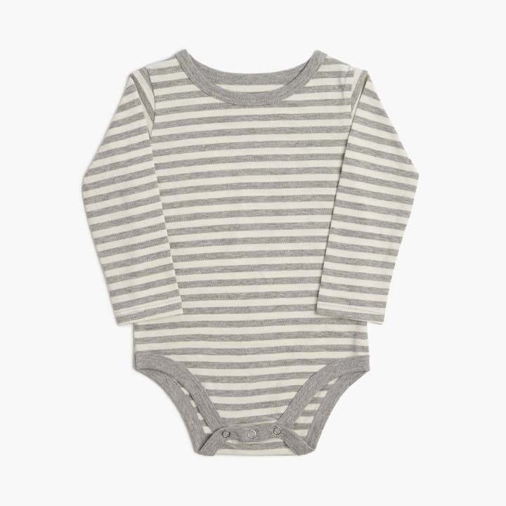 The perfect basic, 100% GOTS-certified organic cotton jersey long sleeve onesie with a classic finished neckline, perfect for drooling and spilling food on. You'll need one for every day of the week (trust us). Plus, it makes the perfect gift.