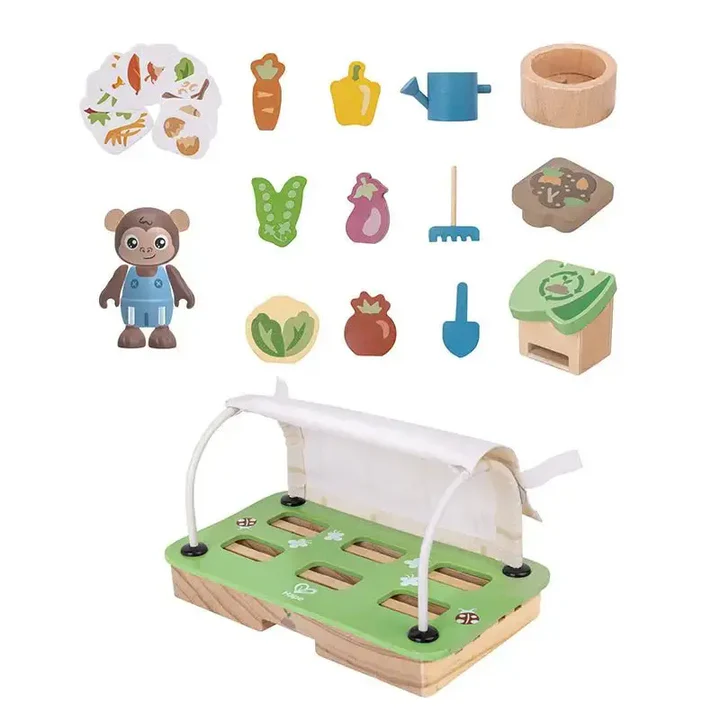 Help the “budding” young gardener in your life grow just like their plants with this adorable greenhouse playset! It’s the perfect way for your little one to learn the joy of gardening. Prepare the soil using the rake and trowel, then plant your lentils, carrots, cabbages and tomatoes in your very own greenhouse! There’s also a watering can, vegetable basket, four compost layers and a compost bin. It’s an interactive way to learn about the life cycle of a plant and how people grow their food. Storytelling, roleplay and other creativity will flow right out of your child’s imagination with these realistic and eco-friendly toys. This interactive toy will help inspire a lifetime of sustainable living and respect for the environment.