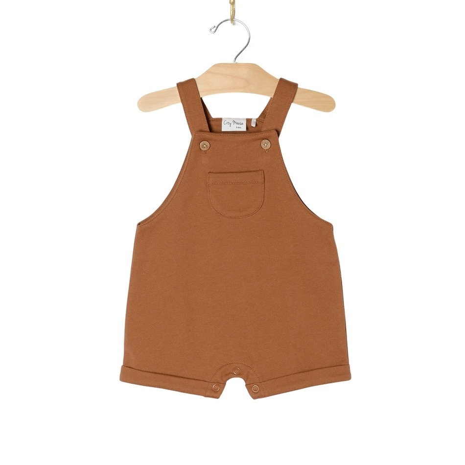 Our shortie overall in light sweat for all the spring and summer romping. Snaps at crotch for easy changing.