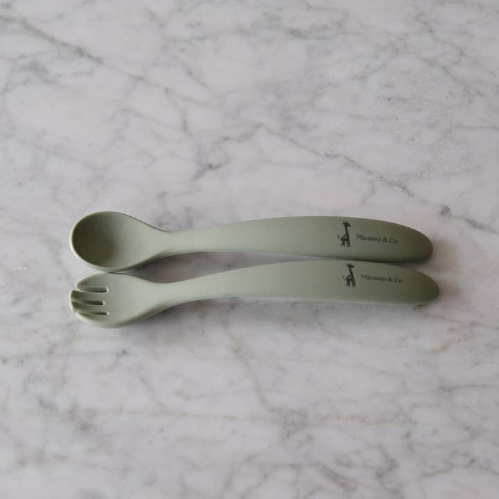 Micasso & Co's silicone utensils are made of platinum-grade silicone. The duo, consisting of a spoon and a fork, perfectly complements the dinnerware set and is offered in the same shades to match your little ones' growth. It can be washed with soapy water, but is also dishwasher safe and heat resistant, so it can be used in the microwave without any problem.